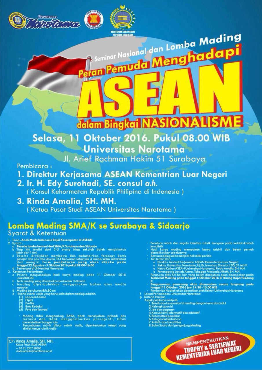 September 13, 2016February 19, 2020 Kepada Yth. Kepala SMA/SMK Negeri/Swasta Kota Surabaya Hal: Seminar Nasional dan Lomba Mading DOWNLOAD SURAT Info Panitia Lomba: Rinda Amalia, SH. MH. CP: 081335780600