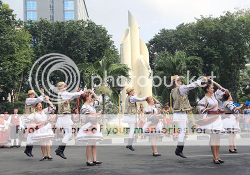 Sesampai di Patung Karapan Sapi, para peserta dari dalam maupun luar negeri berjalan kaki menuju monumen Bambu Runcing. Di lokasi tersebut, mereka secara bergantian menampilkan atraksi seni masing-masing. Wali Kota Surabaya Tri Rismaharini yang melepas rombongan dari Taman Bungkul juga ikut bergabung dalam atraksi seni di Bambu Runcing. Bahkan, orang nomor satu di Pemkot Surabaya itu ikut larut dalam tari-tarian tradisional masing-masing negara.