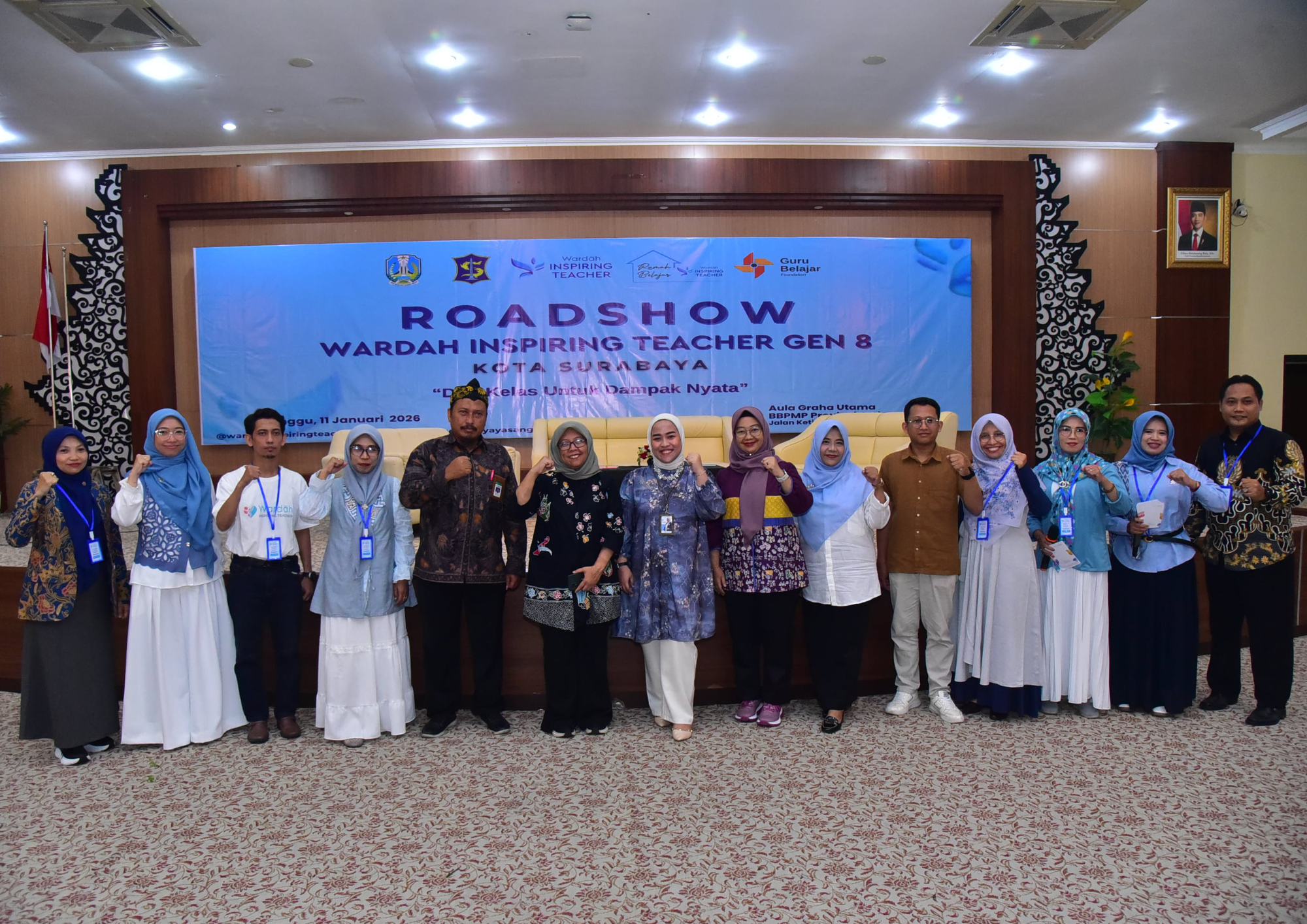 Dinas Pendidikan Kota Surabaya bersama Wardah Inspiring Teacher (WIT), Rumah Belajar WIT, dan Yayasan Guru Belajar sukses menyelenggarakan Roadshow Wardah Inspiring Teacher (WIT) Gen 8 Kota Surabaya, Minggu (11/1/2026), bertempat di Aula Graha Utama BBPMP Provinsi Jawa Timur.