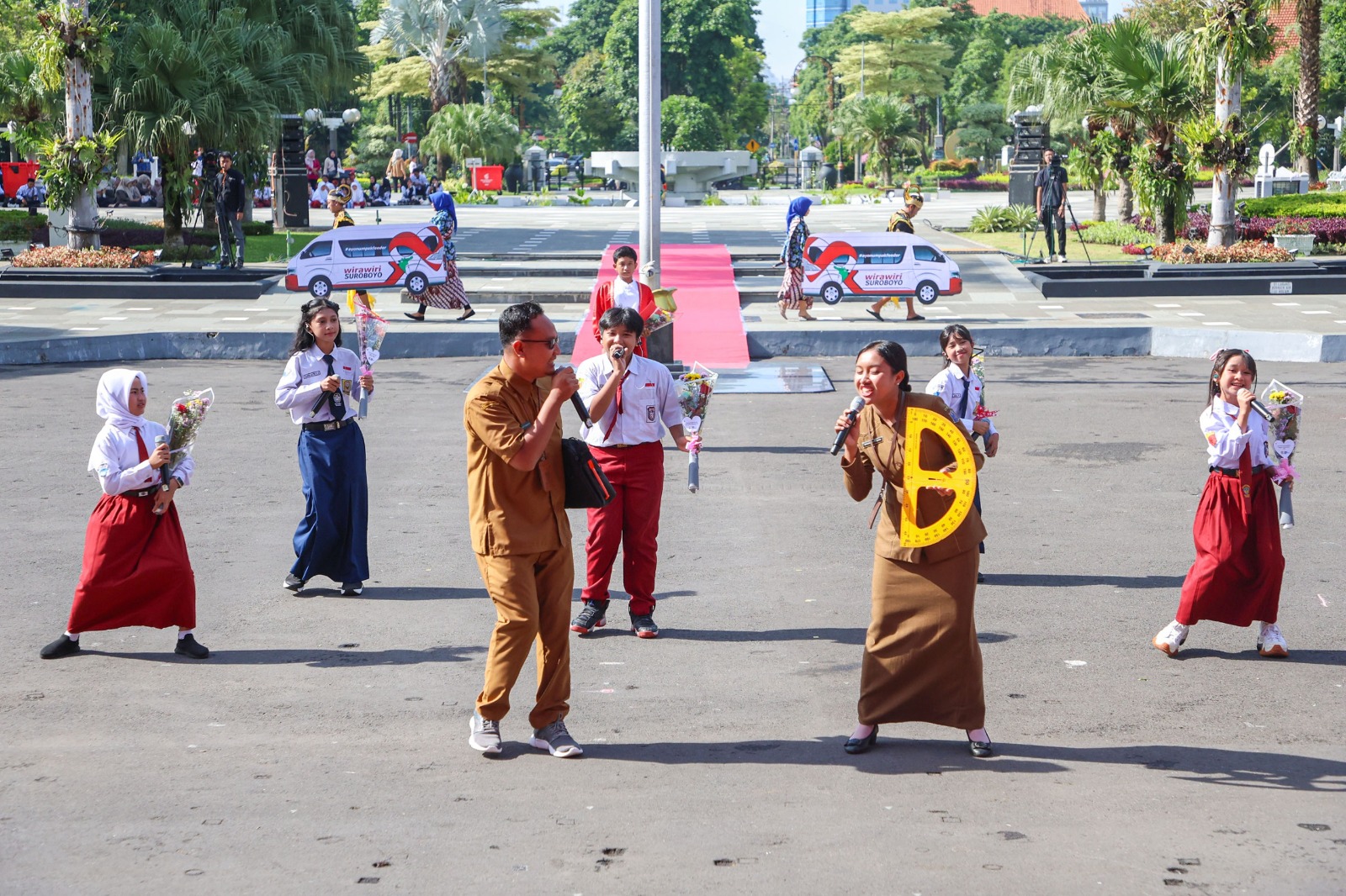 Pemerintah Kota (Pemkot) Surabaya menggelar upacara peringatan Hari Guru Nasional (HGN) di Halaman Balai Kota, Selasa (25/11/2025). Peringatan HGN 2025, sangat spesial dari tahun-tahun sebelumnya karena dipimpin langsung oleh Menteri Pendidikan Dasar dan Menengah Republik Indonesia (RI), Abdul Mu’ti yang bertindak sebagai inspektur upacara didampingi Wali Kota Surabaya, Eri Cahyadi.